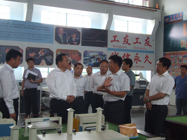 孫述濤書記一行參觀了樣品室,聽取了公司董事長董延偉對公司發(fā)展?fàn)顩r的匯報。他們看到公司與意大利合作研發(fā)生產(chǎn)的五種木工機床的外形不僅新穎,而且了解到這些新產(chǎn)品的性能比傳統(tǒng)的木工機械更加先進(jìn)、更加精密時,對公司的大膽改革創(chuàng)新給予了高度的贊揚,對公司緊跟市場轉(zhuǎn)方式調(diào)結(jié)構(gòu)的做法表示肯定。孫書記還鼓勵說,公司要在科技創(chuàng)新、技改投入上多下功夫,使傳統(tǒng)的木工機械行業(yè)煥發(fā)新的活力。