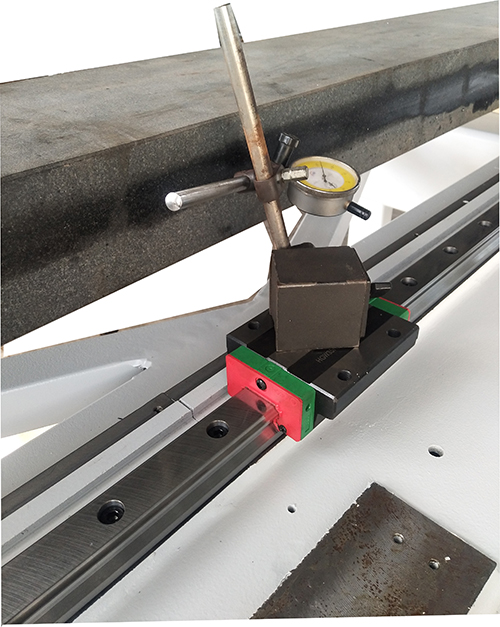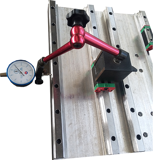 每根導(dǎo)軌安裝時均打表檢測導(dǎo)軌的平行度。