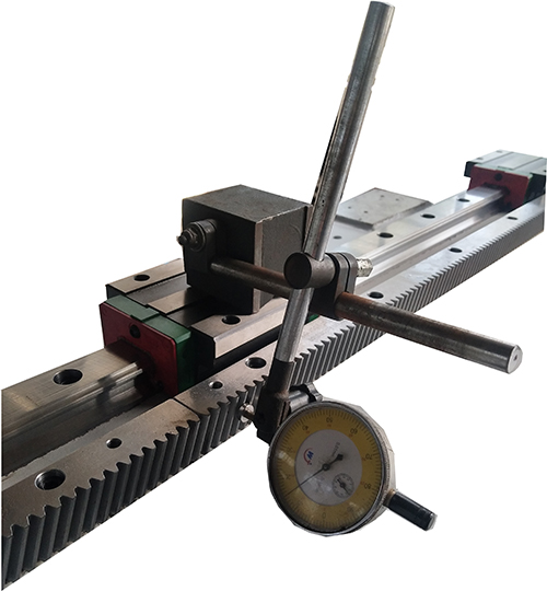 齒條安裝時,均采用千分表檢測齒條面與導(dǎo)軌的平行度,每臺機床做好詳細精度檢驗記錄