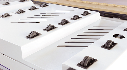 上料滾輪裝置,減小板材與臺面的摩擦,保護板材表面。